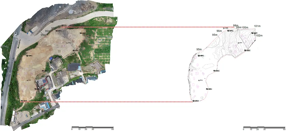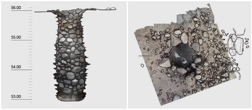 유적 단면도 작성 사례(정사영상 및 도화작업)