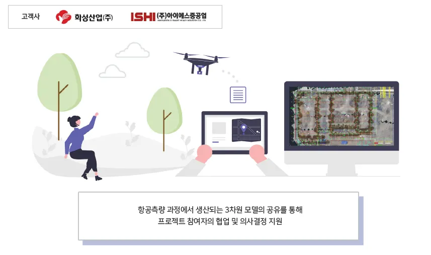 사전조사 및 현황측량에 드론을 활용하여 건설현장 민원대응과 항공측량을 통한 디지털 벌목, 토공량 산출 등이 가능합니다.