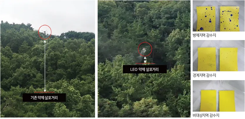 수고를 고려한 정밀한 3차원 자율비행을 지원합니다. 산림관리 및 산림병해충 방제시 최대 50%의 비용을 절감하며 정밀한 근접비행으로 약제의 비산을 최소화함으로써 방제효과가 뛰어납니다. 대상지 접근과 조종자 시야 확보가 어려운 지역도 신속하고 정확한 방제가 가능합니다. 드론 추락으로 인한 산불 방지 등 2차사고 예방 최첨단 산림관리, 식물병해충 방제에 선도적인 역할을 수행합니다. 에프엠웍스는 2019년 대구광역시 동구, 서구, 북구, 수성구, 달서구, 달성군 소나무재선충병 방제사업을 수행완료 하였으며 산림방제 솔루션(LEO)은 조달청 물품등록을 진행중입니다.
