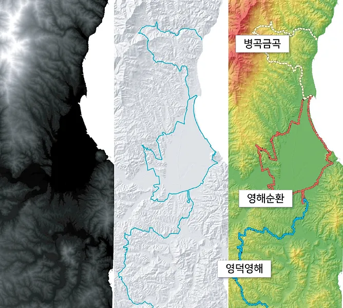등산로 계획 활용예시(DEM, 음영기복도, 고도분석)