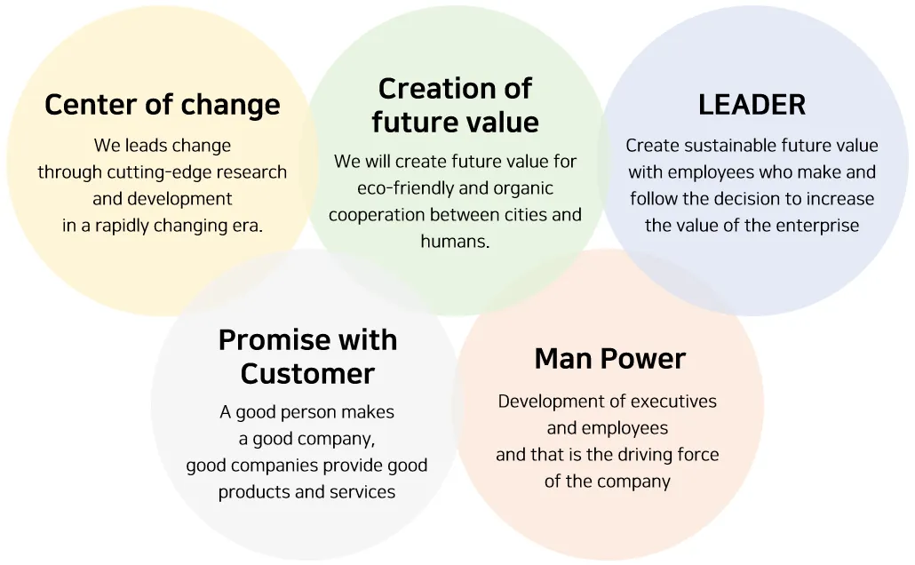 Under the ideology that good people make good companies and good companies provide good products and services, we strive to become a practical company that keeps its promises with customers. We are creating future value based on our experiential know-how and technology to help customers become permanent customers.